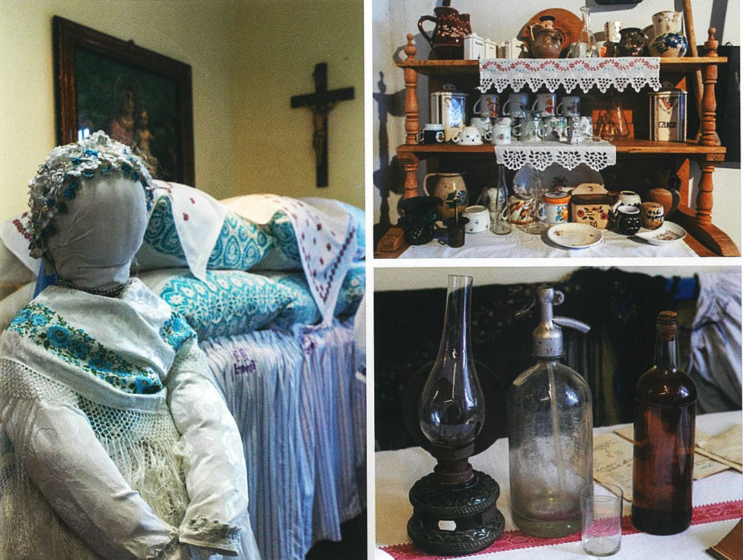 A fiatalasszony viseletét bemutató bábu kék brokátselyem „öltönyben” van. A férfi-bábu az idős emberek ruháját mutatja be. Az ágy végénél látható tulipános ládán az 1912-es évszám olvasható ki. A kamrának berendezett helyiségben szitákat, rostákat, diódarálót, csuprokat, teaszűrőt és egy káposztagyalut láthatunk.